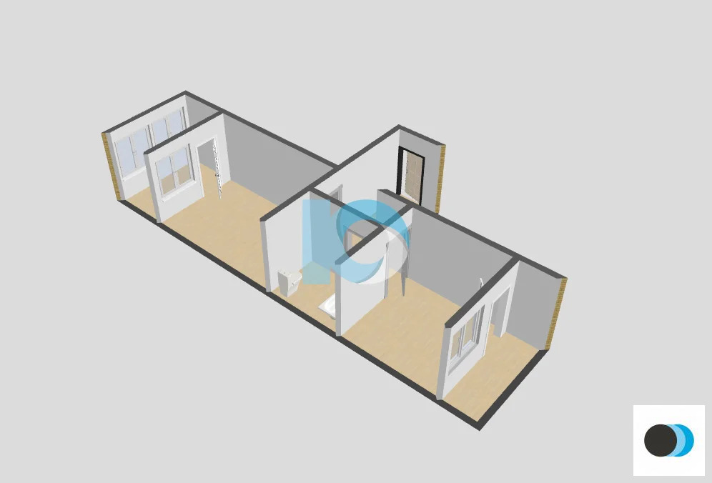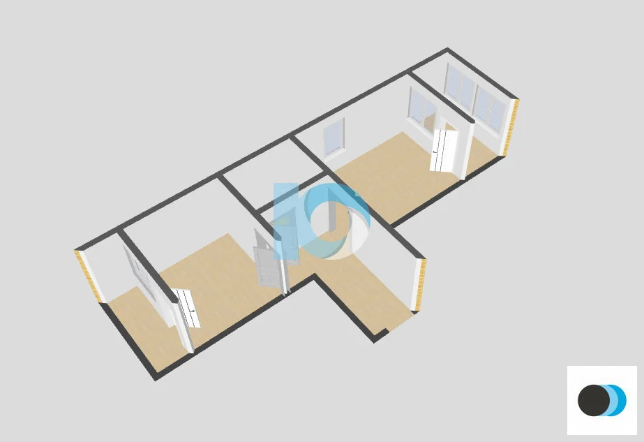 Планировка «распашонка» — окна выходят на три стороны, что обеспечивает хорошее естественное освещение.